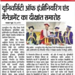 Press releases in the 2 most leading newspapers of Rajasthan – Dainik Bhaskar and Rajasthan Patrika on 26th August, 2019, regarding Convocation-2019 held at the University of Engineering & Management (UEM), Jaipur, where degrees were given away to the students of 2018 passout batch.