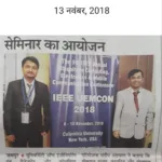 News releases in leading newspapers of Rajasthan including the two most leading newspapers Dainik Bhaskar and Rajasthan Patrika, regarding UEMCON-2018, International Conference organized by the University of Engineering & Management (UEM) and the Institute of Engineering & Management (IEM) in association with IEEE USA, held at Columbia University, New York, USA. Delegates from more than 30 countries attended the conference.