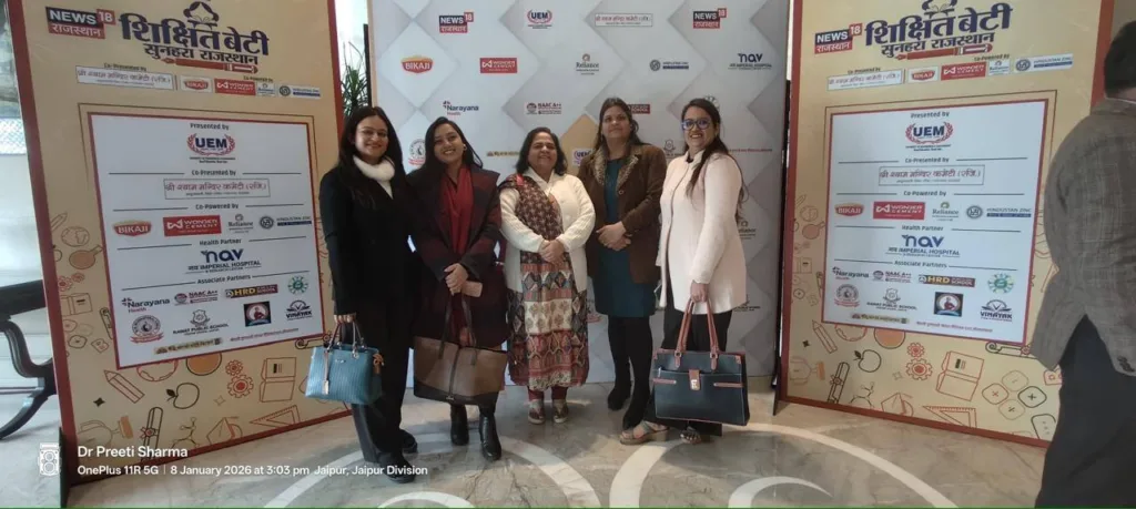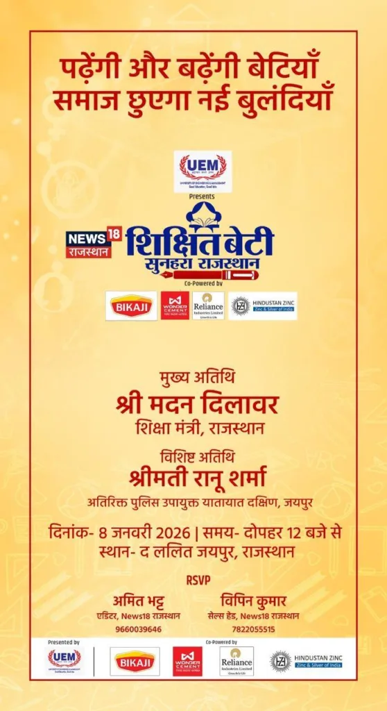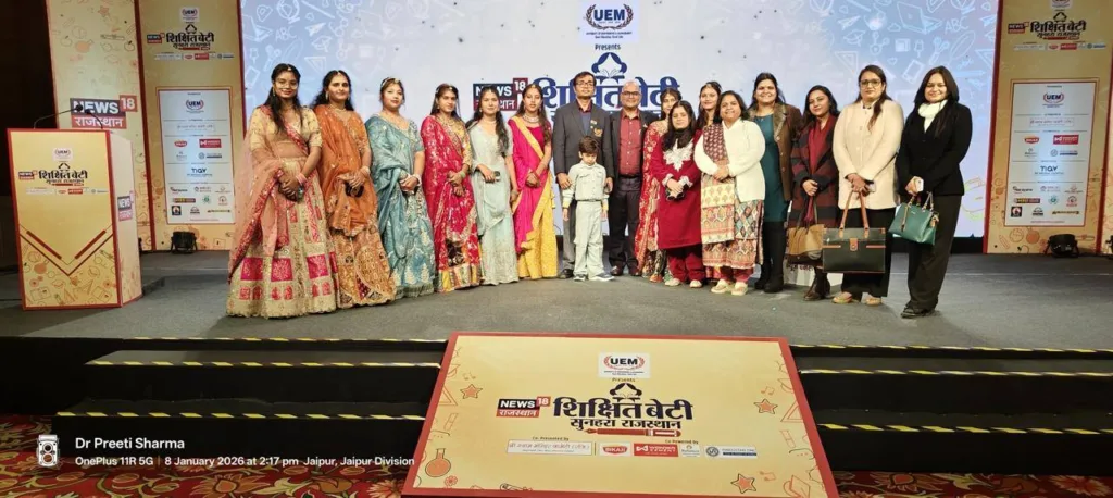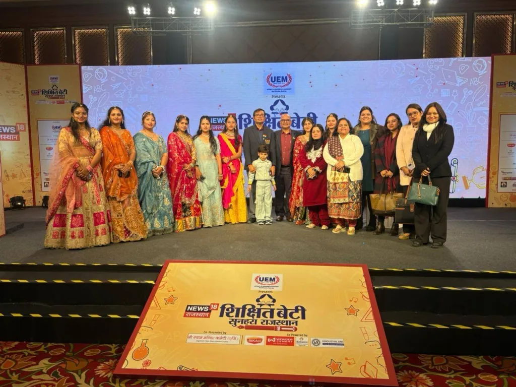 UUniversity of Engineering & Management (UEM), Jaipur, in proud association with NEWS18 Rajasthan, successfully organised the prestigious “Shikshit Beti, Sunahara Rajasthan” Summit, a powerful platform dedicated to celebrating and strengthening the cause of girls’ education, empowerment, and leadership in the state. The summit reflected the shared vision that an educated daughter is the foundation of a progressive and prosperous Rajasthan.