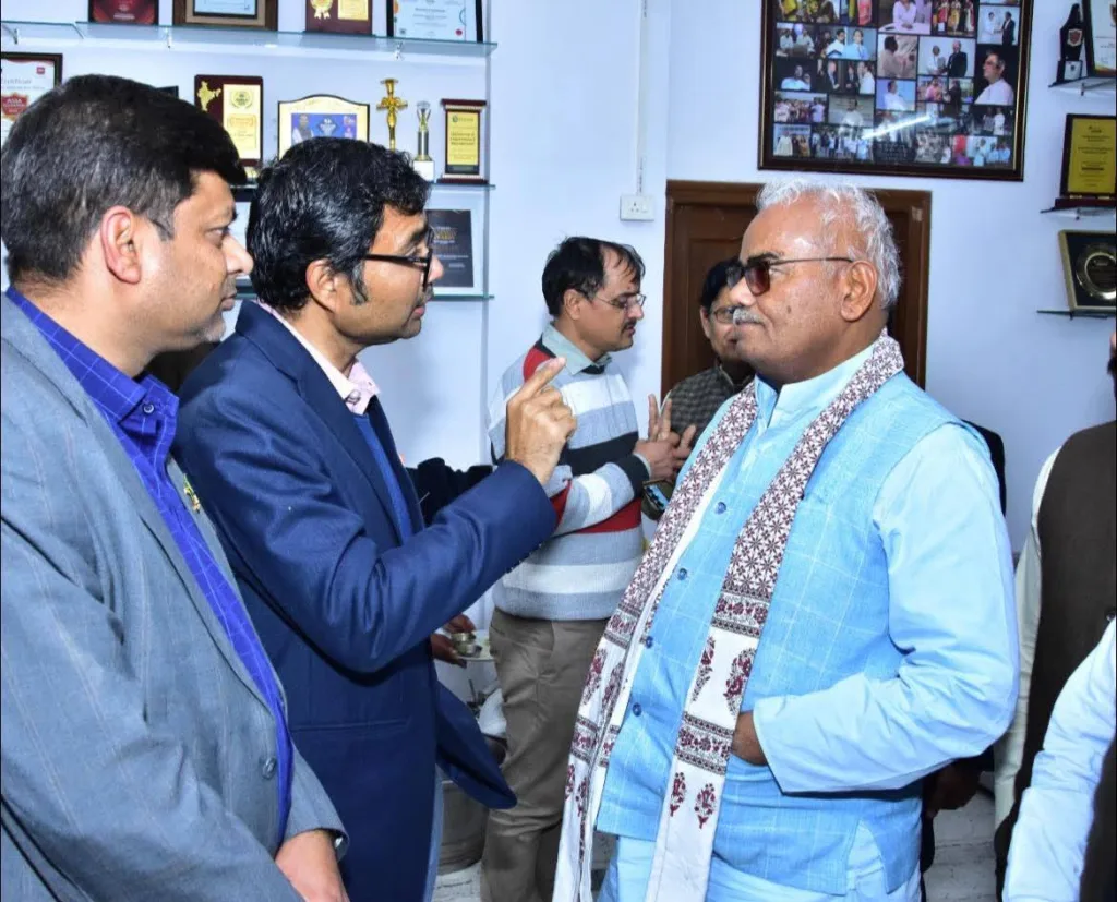 During the interaction, the Hon’ble Minister engaged in meaningful discussions on education, research, and the future of academic excellence, listening attentively to ideas and perspectives shared by the university leadership. His humble, approachable, and thoughtful demeanour reflected a deep commitment to understanding grassroots academic realities and fostering constructive dialogue with institutions.
