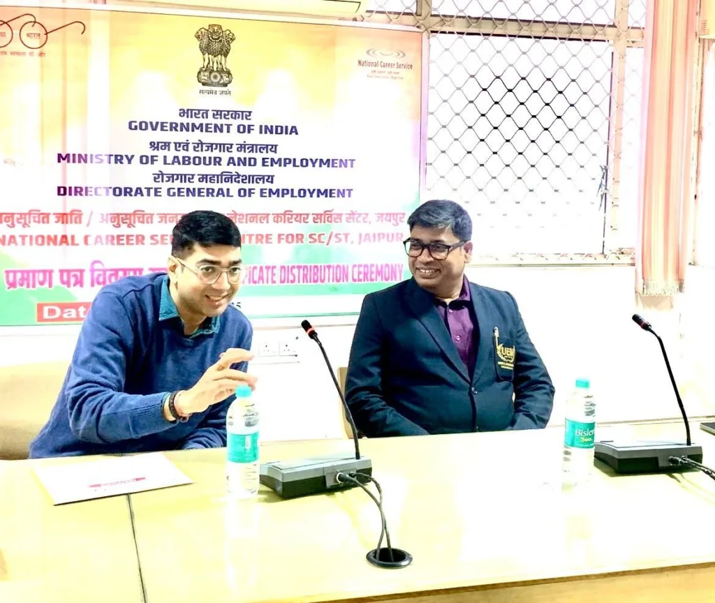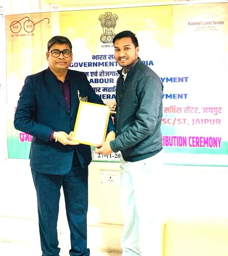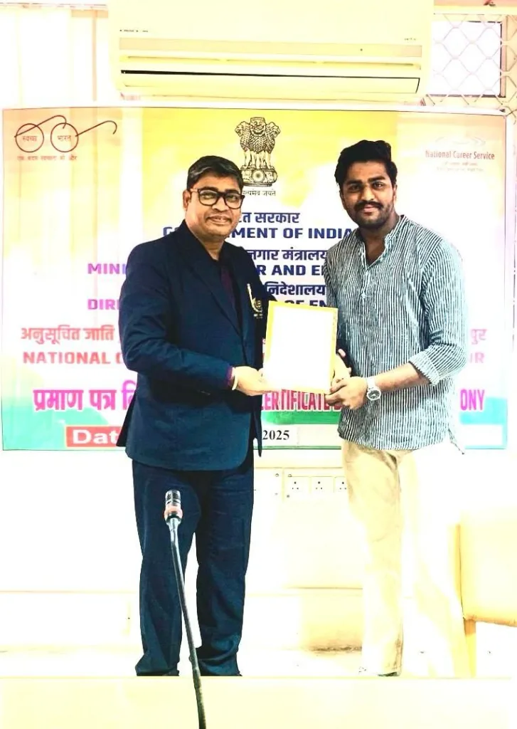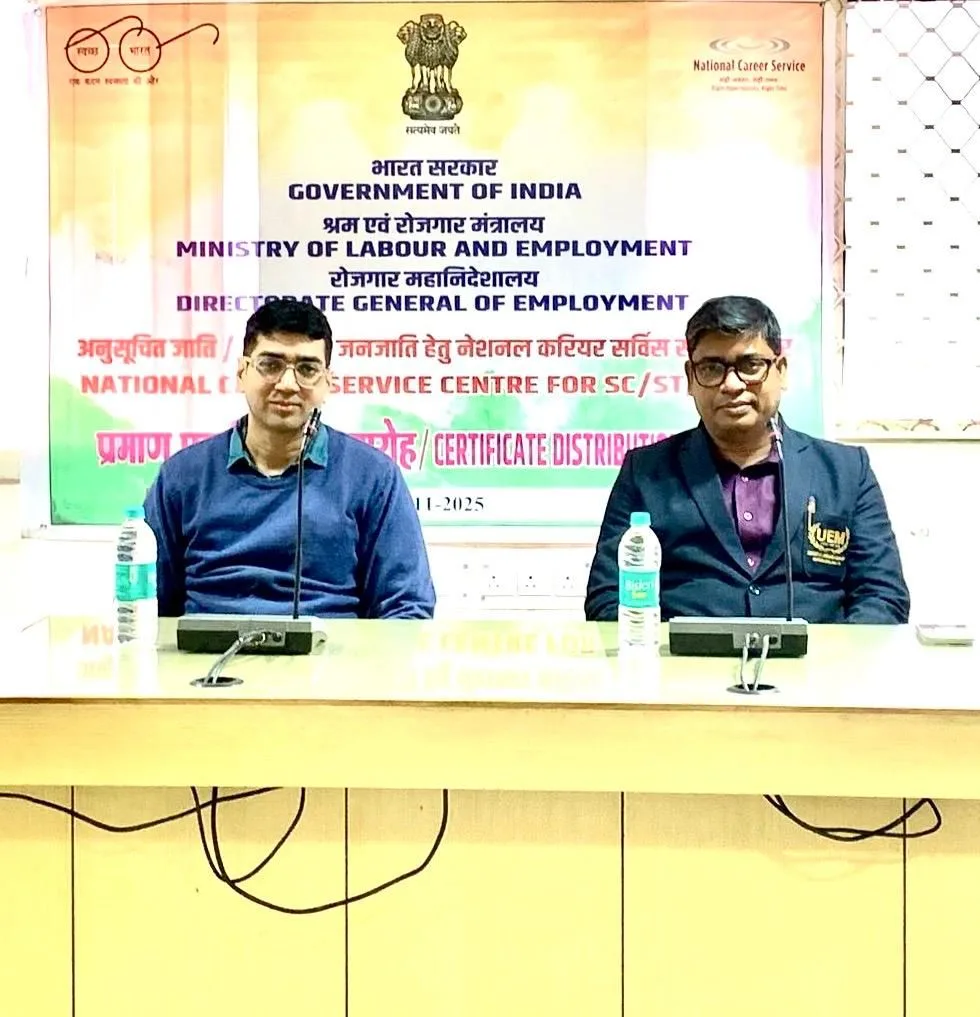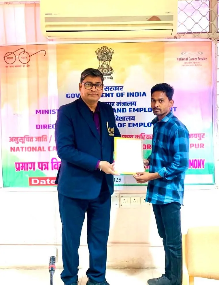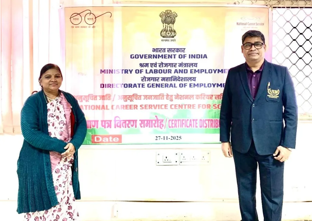 University of Engineering & Management (UEM), Jaipur is pleased to share that on 27th November 2025, Mr. Sankar Sing, Deputy Director – Corporate Relations, was invited by the Directorate General of Employment (NCSC), Ministry of Labour and Employment, Government of India, to represent the university at the Certificate Distribution Ceremony for trainees who successfully completed their training under the department.