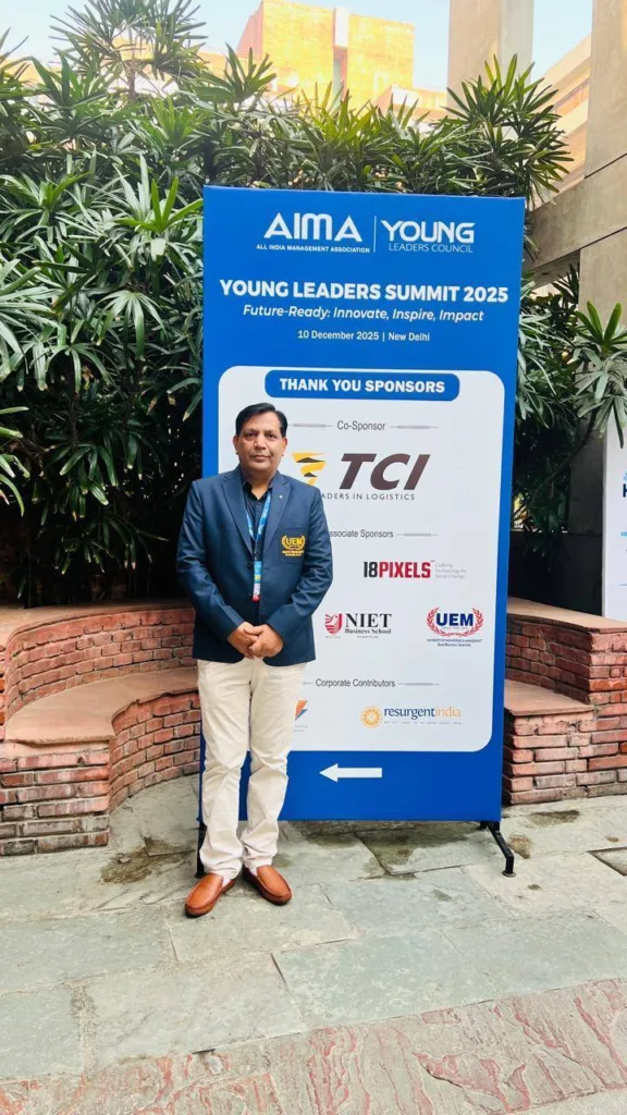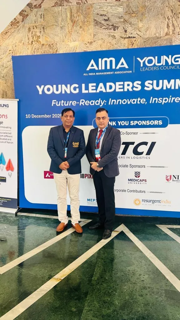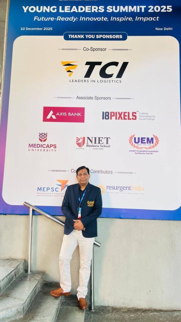 University of Engineering & Management (UEM), Jaipur is proud to share that Prof. (Dr.) Mukesh Yadav represented the university at the prestigious AIMA Young Leaders Summit, held at the Stein Auditorium, India Habitat Centre, New Delhi.