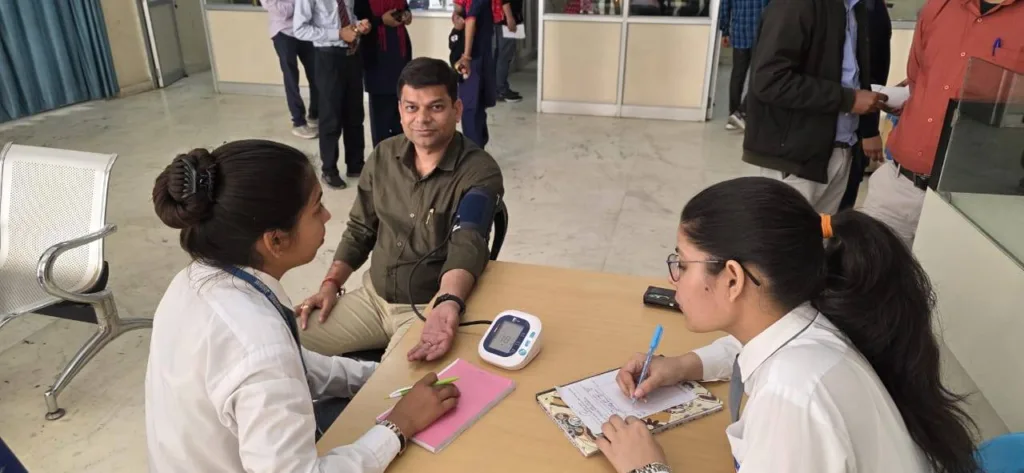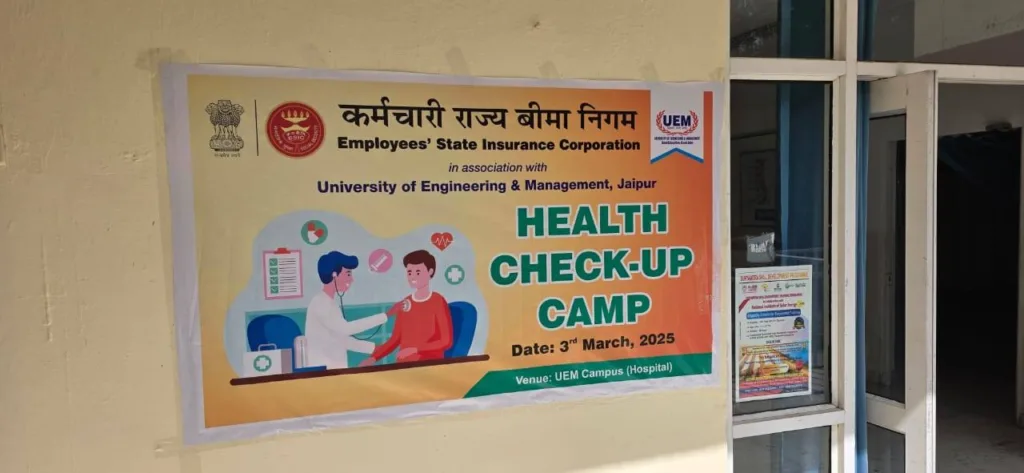 The Employees’ State Insurance Corporation (ESIC) in association with University Of Engineering & Management (UEM), Jaipur organized health check-up camp for our staff and faculty members, Security guards, House Keeping staff, Mess Staff to promote early detection and management of health issues, during this camp these Members of Jaitpura ESIC Hospital were present.