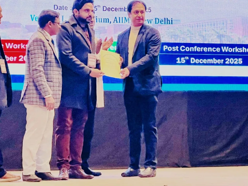 This national-level recognition reflects Dr. Shrivastava’s outstanding academic contributions, unwavering dedication to physiotherapy, and his forward-looking approach to healthcare through innovation, research, and evidence-based practice. Being honoured on a distinguished platform like AIIMS underscores his academic excellence, professional integrity, and leadership in healthcare education.
