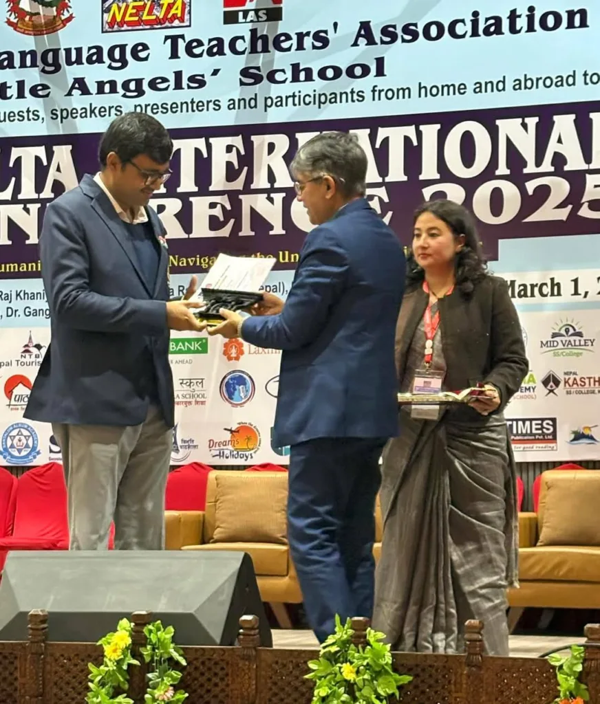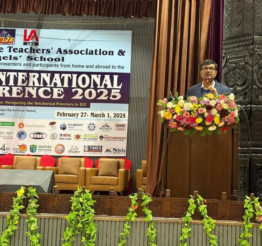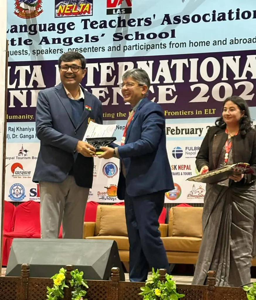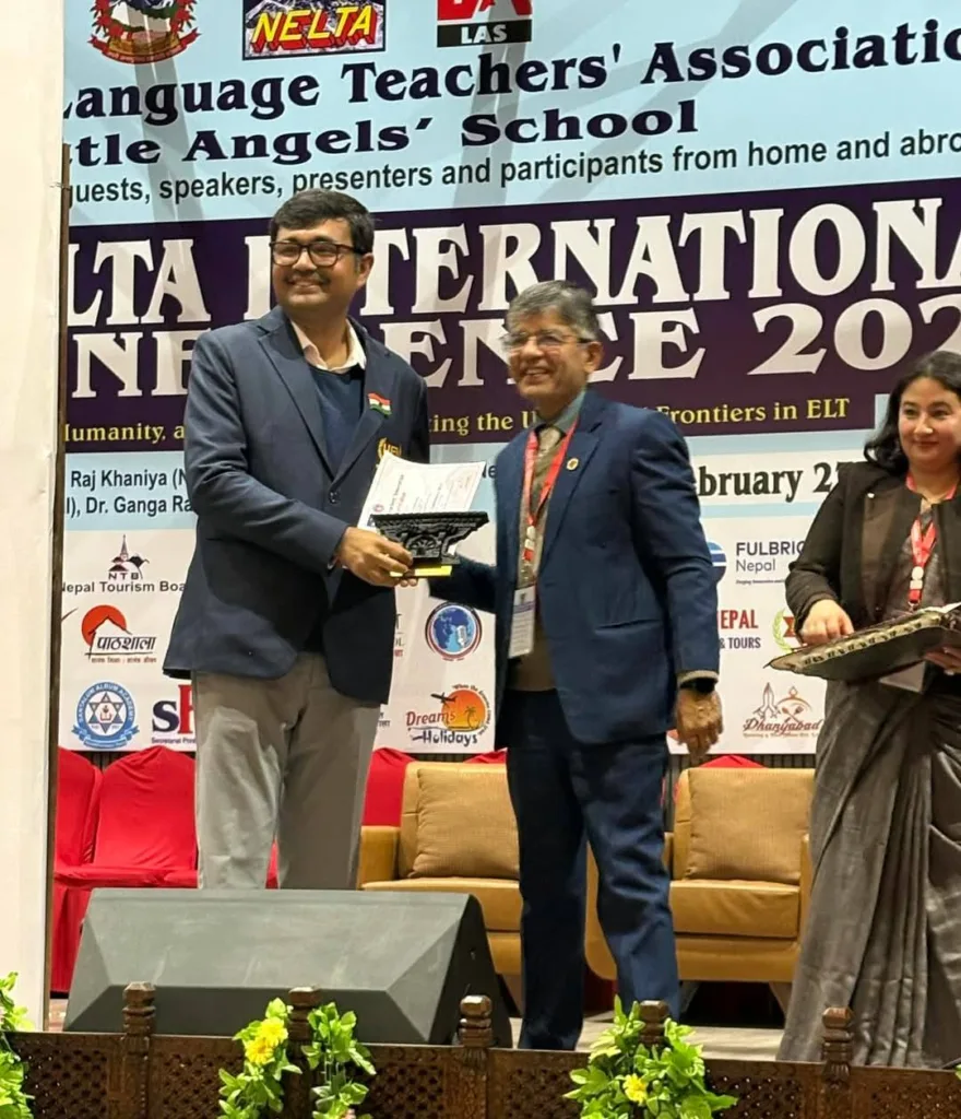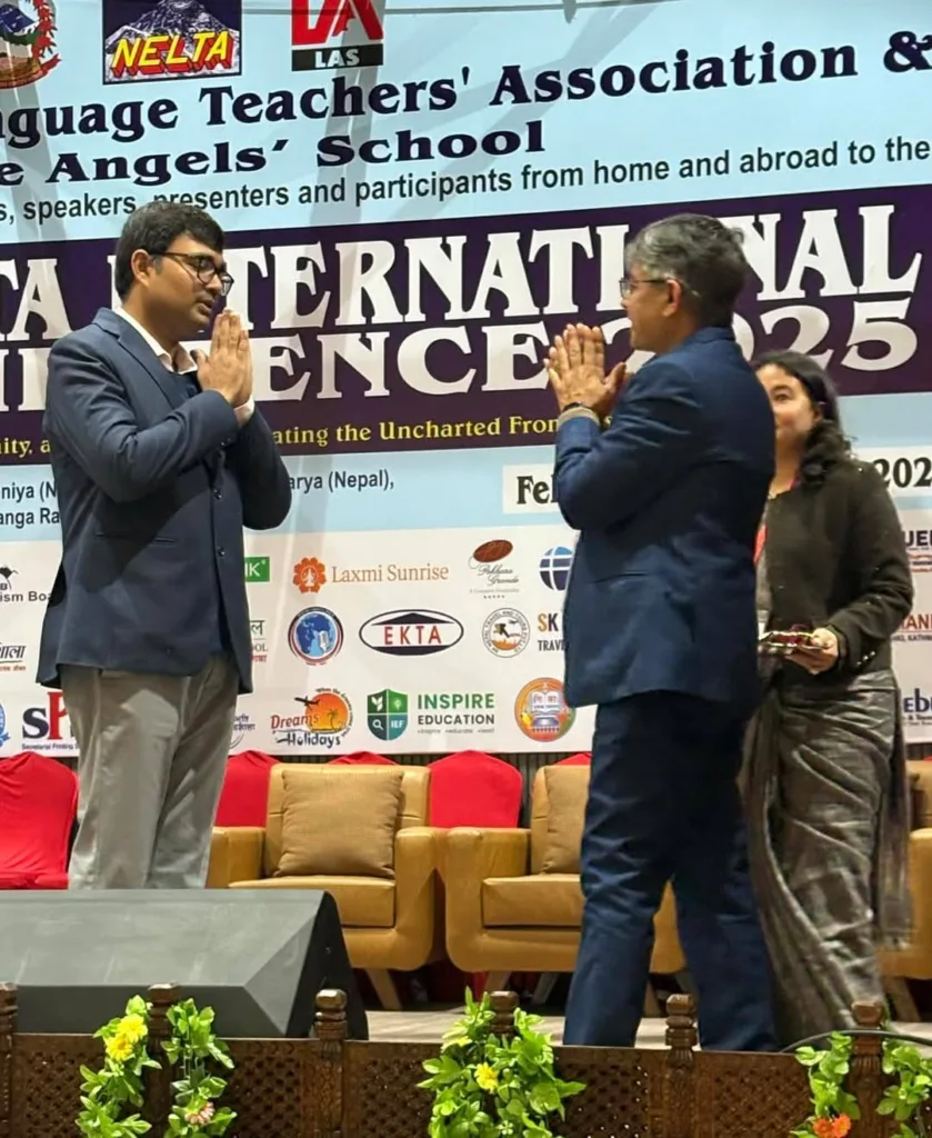 A few moments from a significant deliberation on the use of AI in English teaching at the NELTA International Conference, Nepal. Representing the University of Engineering and Management (UEM), Jaipur, was Prof. Dr. Biswajoy Chatterjee.