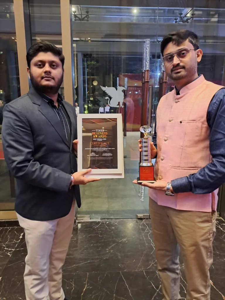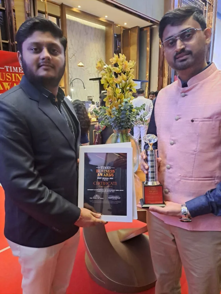 We are delighted to share that Prof. Sourav Chakraborty, Assistant Professor – CSE, and Prof. Sayak Pramanik, HoD – Computer Applications, proudly received the Times Now Business Excellence Award, West Bengal 2025, on behalf of University of Engineering & Management (UEM), Jaipur.