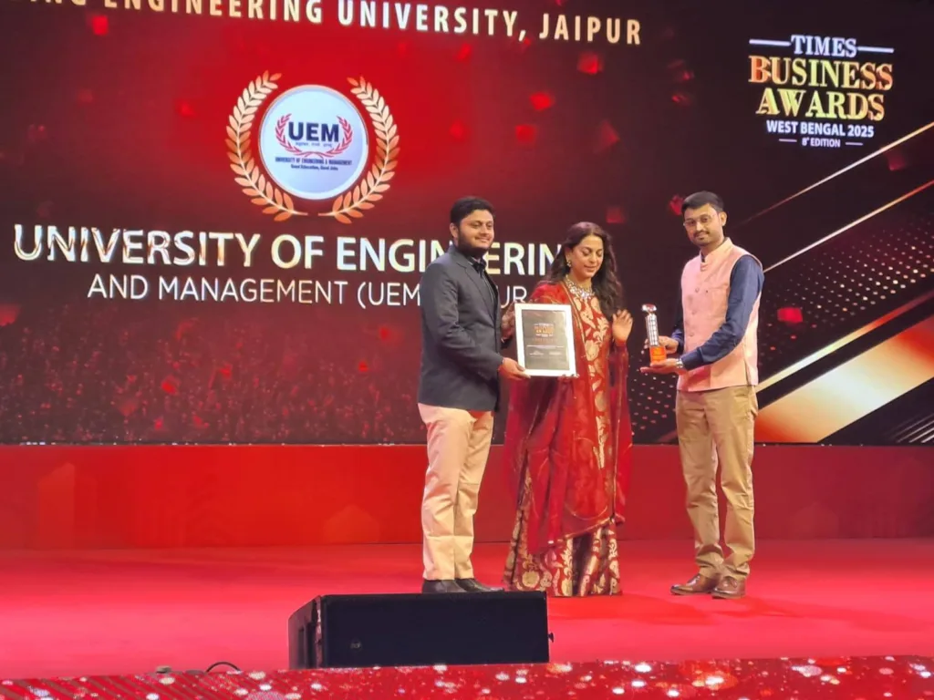 UEM Jaipur was honoured in the prestigious category of “Leading Engineering University of Jaipur” at a grand ceremony held at JW Marriott, Kolkata, on 27th May 2025, in the esteemed presence of celebrated Bollywood actress Ms. Juhi Chawla.