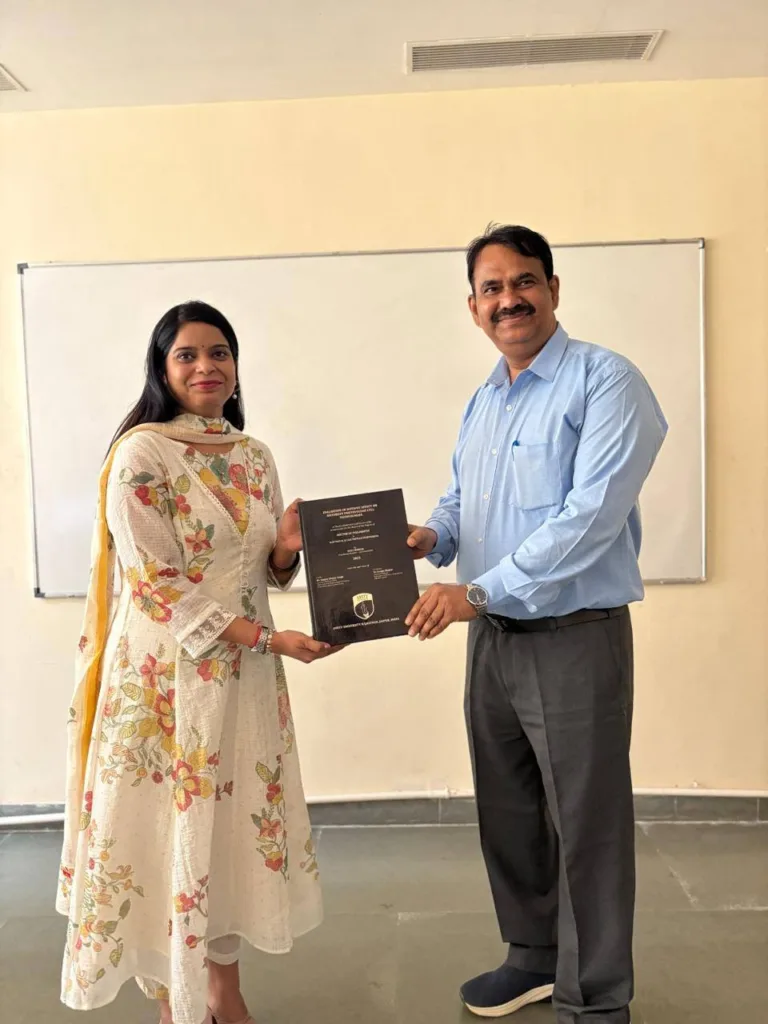Her doctoral research, titled “Evaluation of Hotspot Effect on Different Photovoltaic Cell Technologies,” was carried out at Amity University Rajasthan, Jaipur, contributing valuable insights to the field of renewable energy and photovoltaic system efficiency.