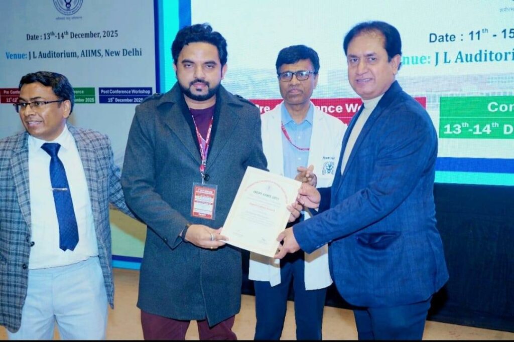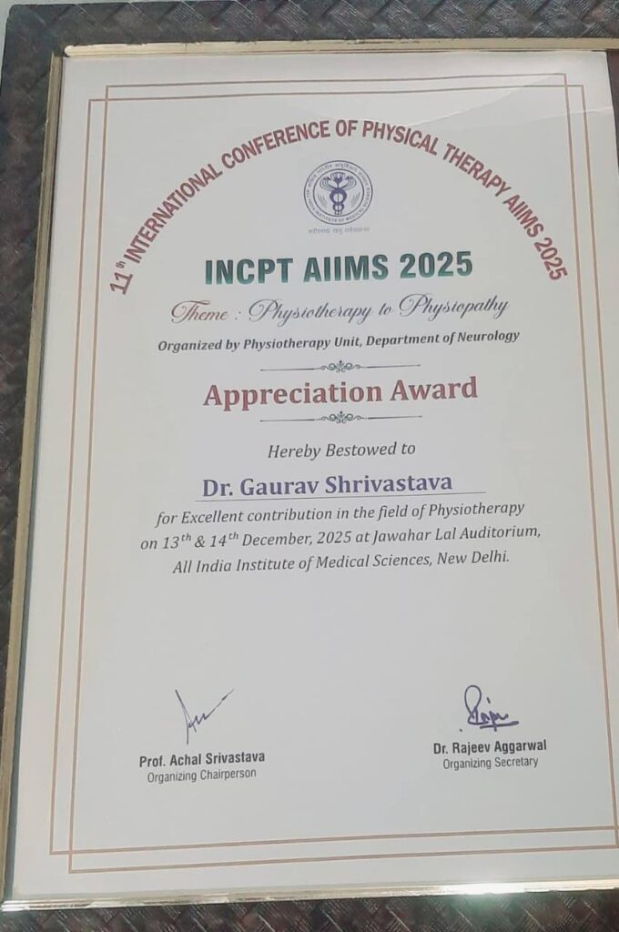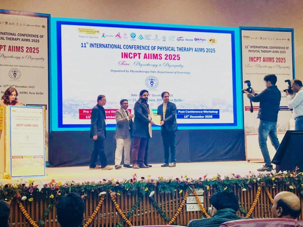 This national-level recognition reflects Dr. Shrivastava’s outstanding academic contributions, unwavering dedication to physiotherapy, and his forward-looking approach to healthcare through innovation, research, and evidence-based practice. Being honoured on a distinguished platform like AIIMS underscores his academic excellence, professional integrity, and leadership in healthcare education.