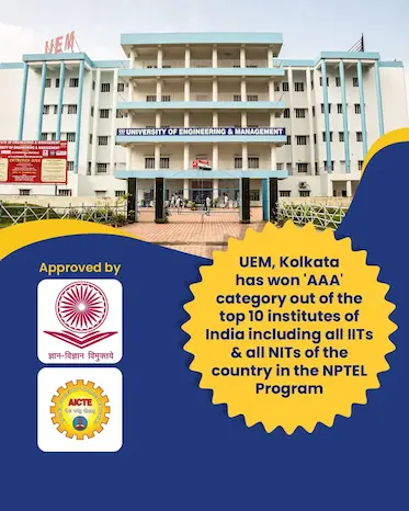 University of Engineering & Management (UEM) aims to provide an international ambience and exposure with innovative teaching techniques and courses which are tailor-made (technical & soft skills) for the job market giving the students the winning edge and competitive advantage during placements.