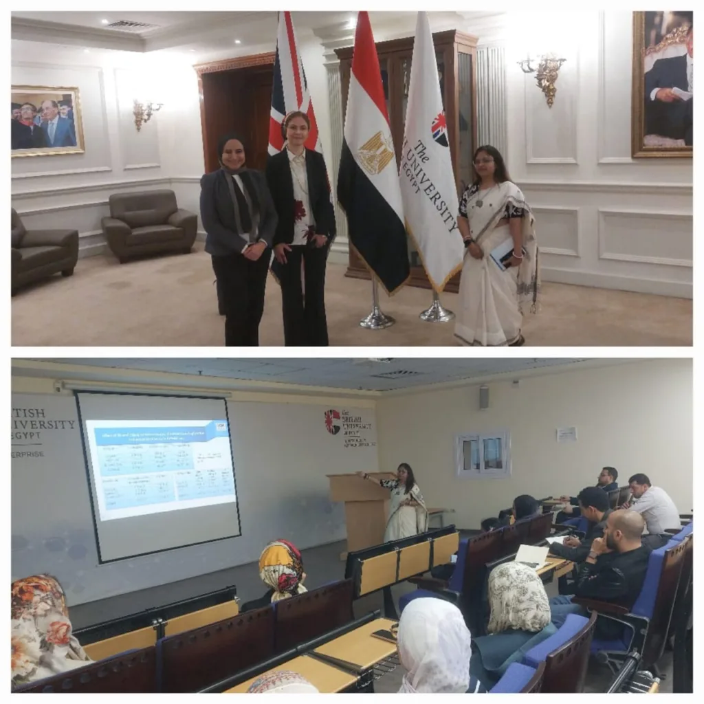 Dr. Suvadra Das (Professor of Chemistry, UEMK) have presented her research work as an invited speaker at British University of Cairo, Egypt and she have also successfully made a research collaboration with Ain Shams university, Egypt